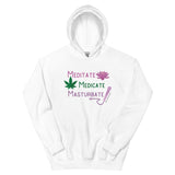 Meditate Medicate Masturbate® Unisex Black, Grey or White Hoodie