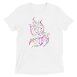 The tri-blend fabric creates a vintage, fitted look. And extreme durability makes this t-shirt withstand repeated washings and still remain super comfortable. This is a softer, light weight, straight cut t-shirt. Size up for a looser fit.