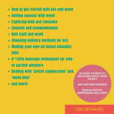 Please note, this webinar contains no nudity or live body demos, this is a presentation style workshop. All genders welcome, no partner or cannabis experience necessary!