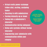 • Virtual erotic power exchange (video chat, sexting, assigning tasks)